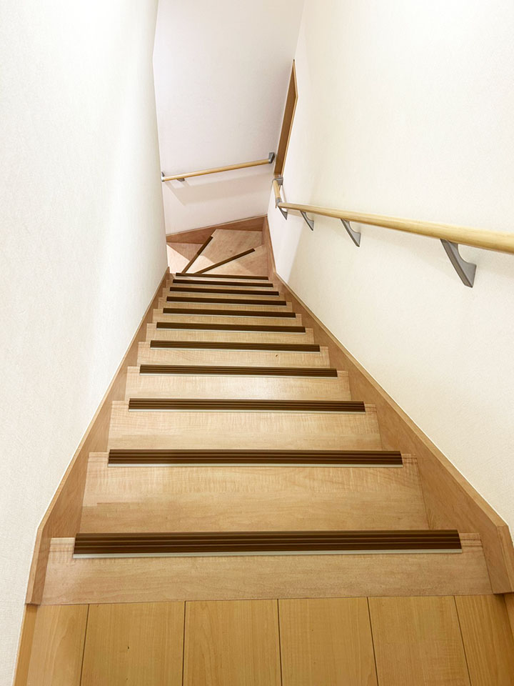 先日、他事業所を訪問した際、階段の滑り止めがついているのを発見!
