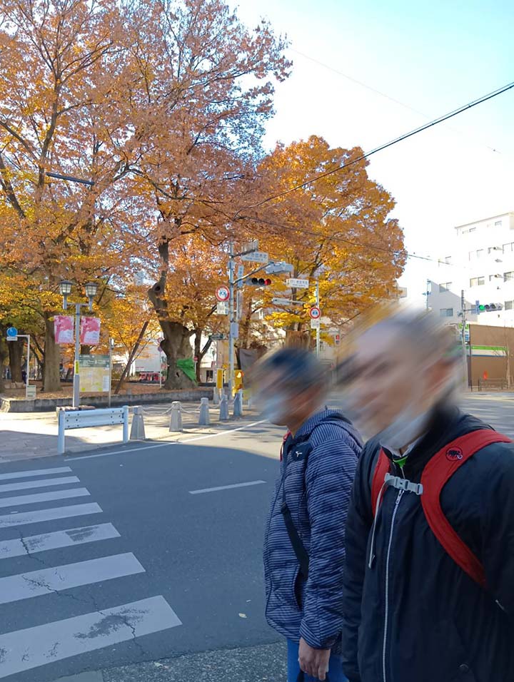 バスがお好きではないKさん。復路は紅葉の下、落ち葉のじゅうたんを踏みしめながら、のんびり帰りました♪