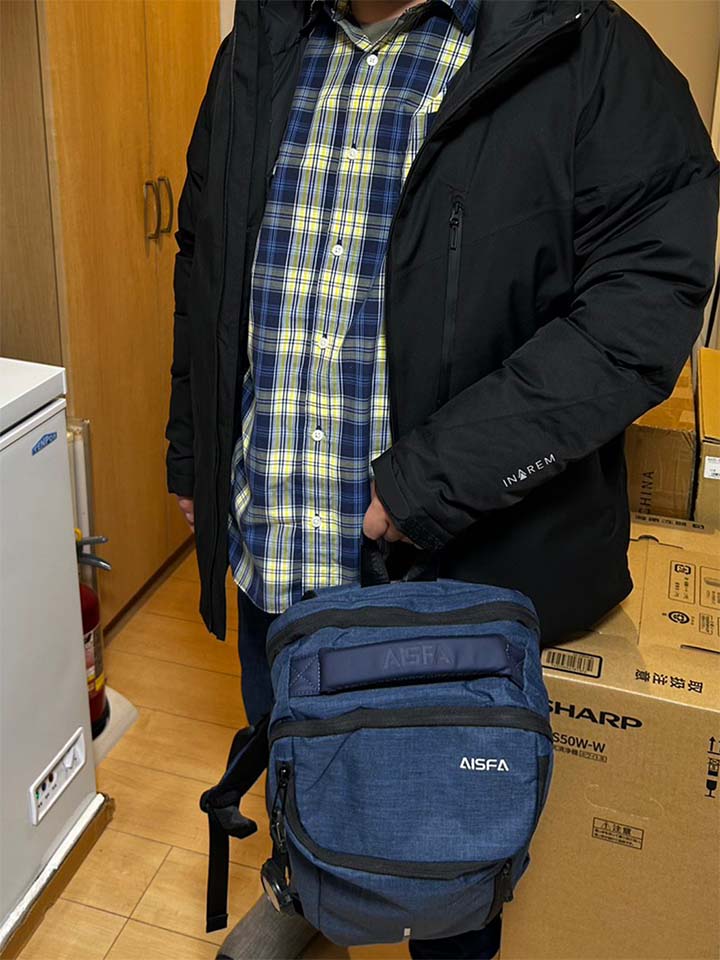 今回は、ちょっと早い自分へのクリスマスプレゼントとして「リュック」を買うことに。職員と一緒にネットで選び、今日届きました!