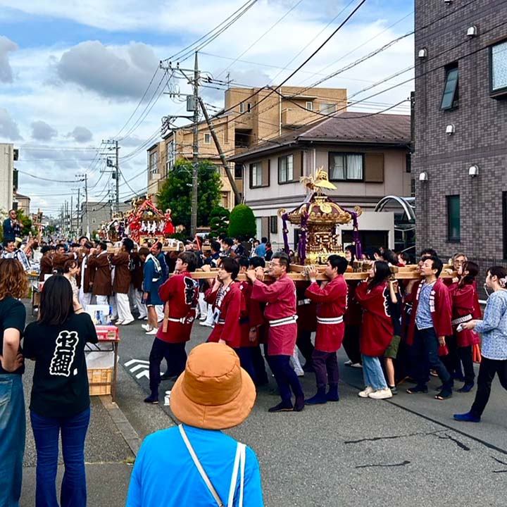 お問い合わせレインボーズアパートメント矢川の本当にすぐそばを、神輿が五騎、町内会のみなさんに担がれて賑やかに通っていきました!