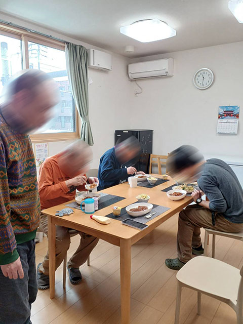 みんなで昼食の支度をし、食卓を囲みました。外は冷え込んでいますが、ホームの中はあたたかです。