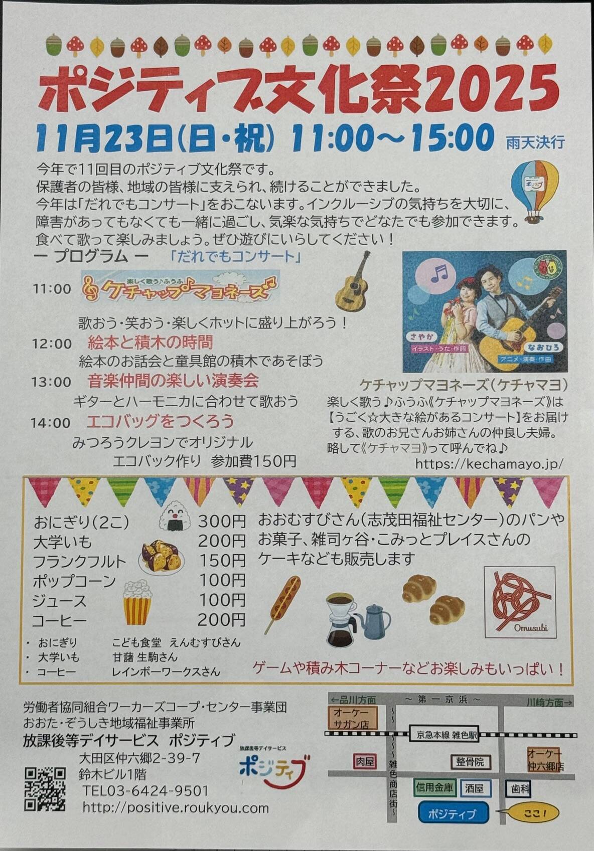 11/23(日・祝)には、放課後等デイサービス「ポジティブ」さんが主催する、