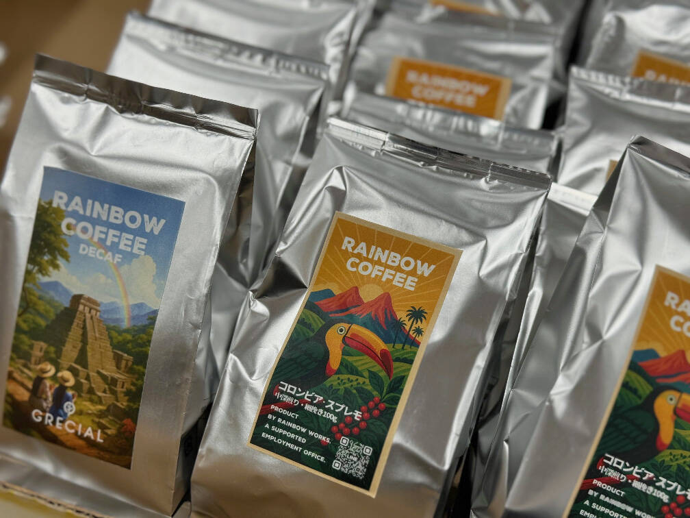 カフェイン「あり」も商品化します レインボーコーヒーといえば、カフェインレス。これまでそのイメージで展開してきました。6月には通常タイプのコーヒー焙煎にも、挑戦を始めたことをお知らせしましたが、このたび、ついにパッケージが完成しました。通販での取り扱いはまだ準備中ですが、ひとまずパッケージデザインを先行公開します。 前の記事 次の記事