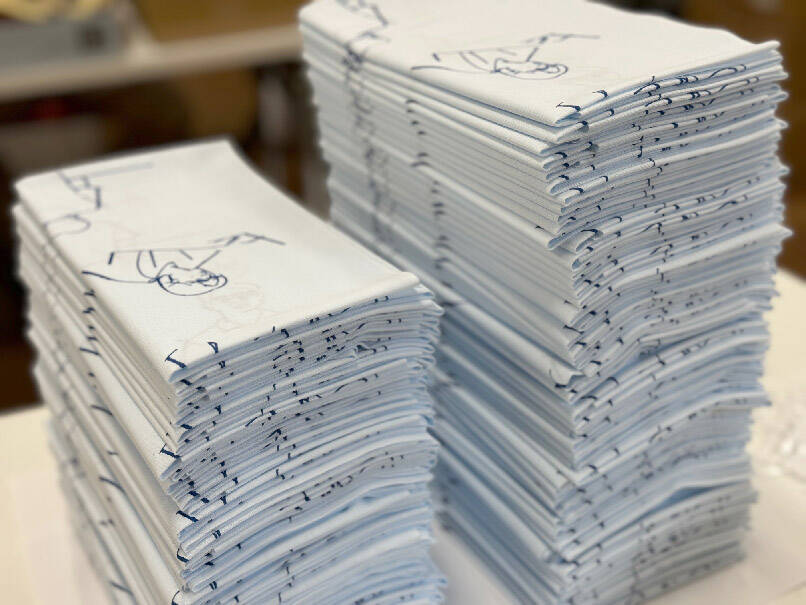 手ぬぐいのたたみ・折り・巻紙の取り付けなど。