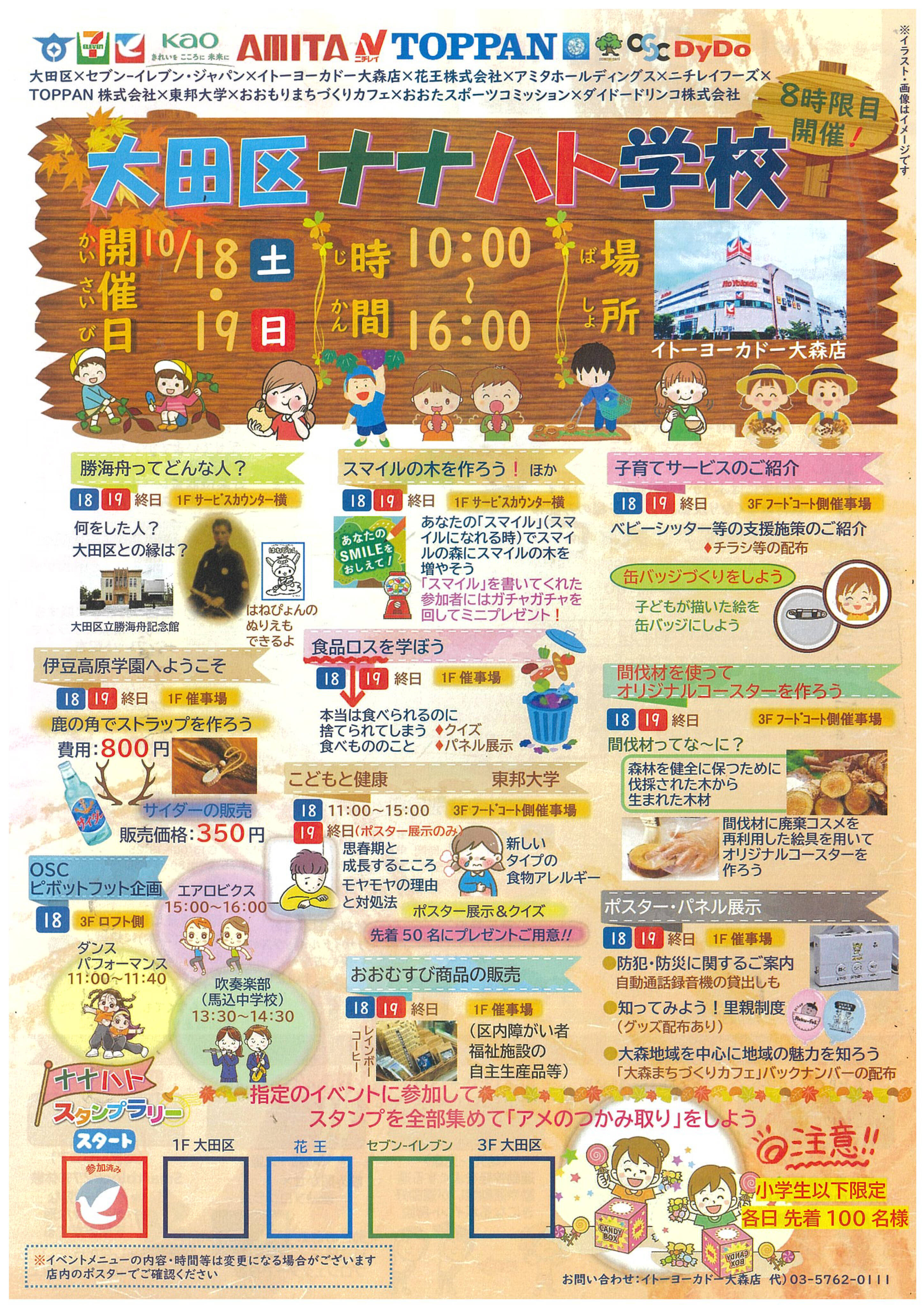 ナナハト学校は、イトーヨーカドー大森店と大田区の公民連携イベントです。