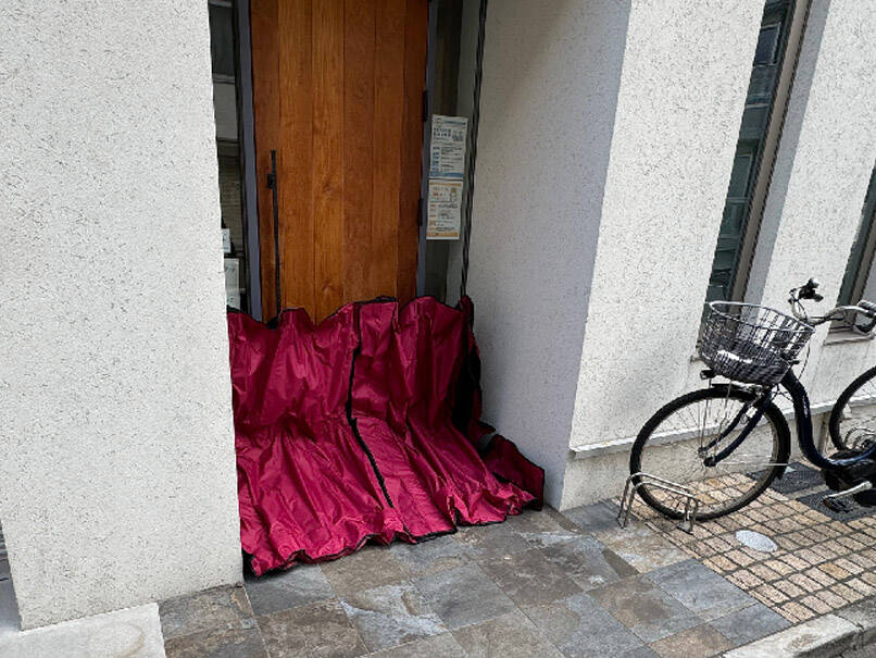 最近、レインボーワークスの建物では、止水板を用意しました。
