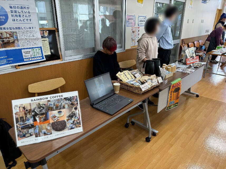 さぽーとぴあ販売会(12/12) この日は、喫茶色えんぴつさん(弁当)と、芋やぽんぽこさん(弁当)との合同販売でした。今回も「販売に行きたい」と手を挙げてくれた利用者さんが参加し、一人ひとりのお客さんに声をかけながら、丁寧に接客してくれました。寒さもあってホットコーヒーを選ばれる方が多く、早い時間に用意分がなくなりました。看板やポップなど、ブースまわりの工夫が増えてきた分、準備や段取りも、よりスムーズにできるようにしていきたいところです。 前の記事 次の記事